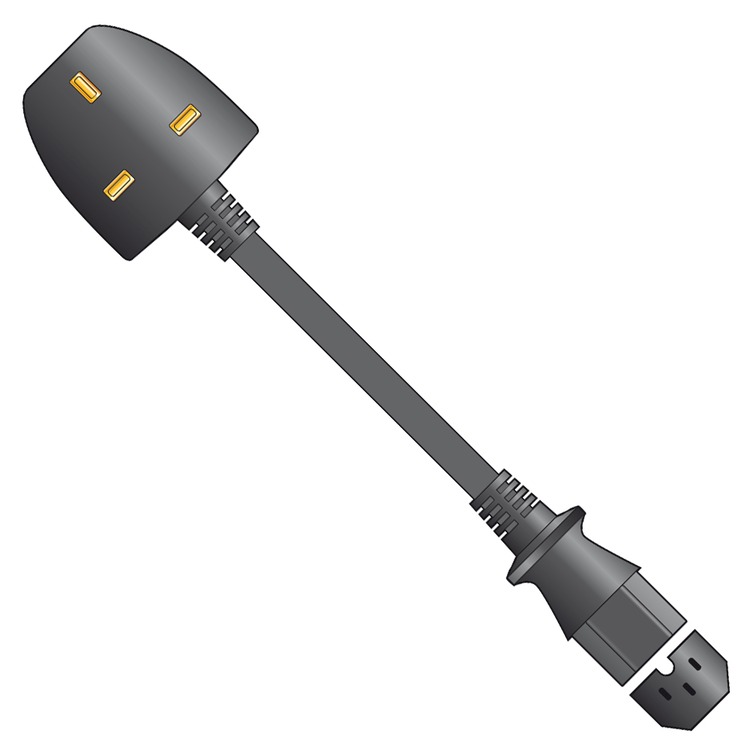 10A UK 3 pin plug to IEC C13 female plug, 3 core hot mains power lead, suitable for connecting electronic equipment with a heating filament or for use in a heated environment.