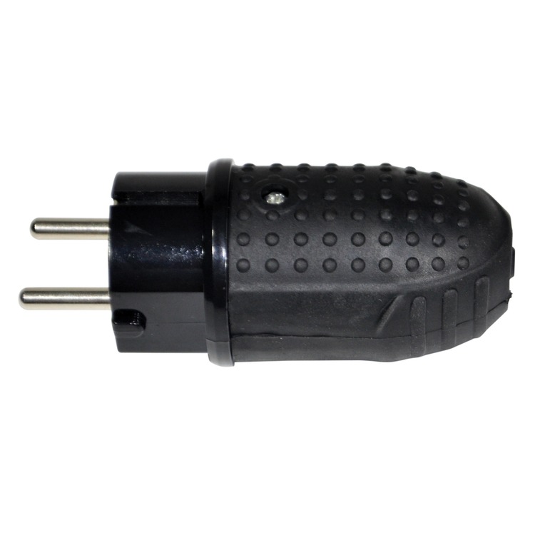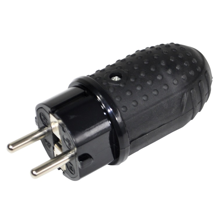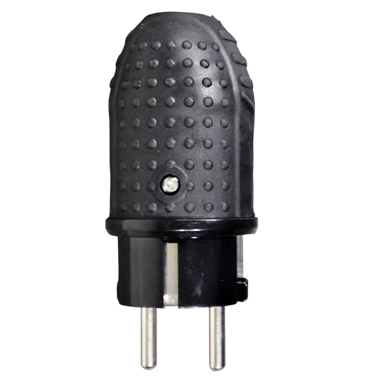 European Schuko 2P + Earth, black 16A 250V IPX4 rubber plug.