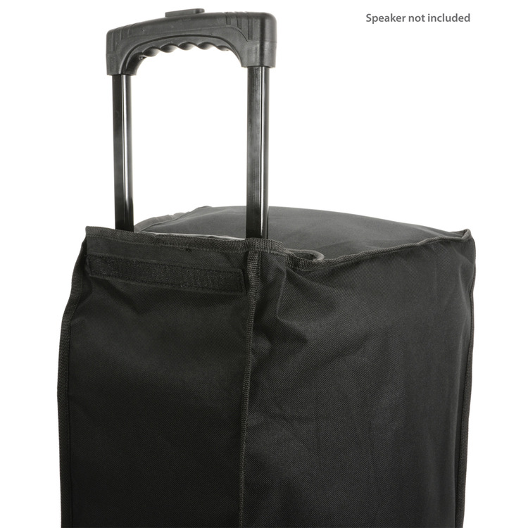 Made from hard-wearing fabric with durable seam binding; access holes to the PA's carrying handles; and a hook-and-loop fastener-secured flap through which to extend or stow the cabinet' s retractable pull handle.