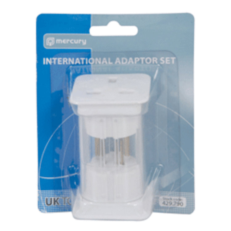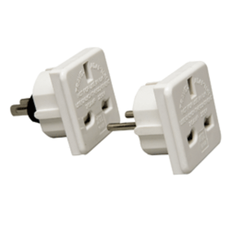 Mains adaptors to allow devices fitted with UK mains plugs to be used in European or USA sockets. Note: this is purely a socket adaptor - you must ensure your device is suitable for the local voltage.