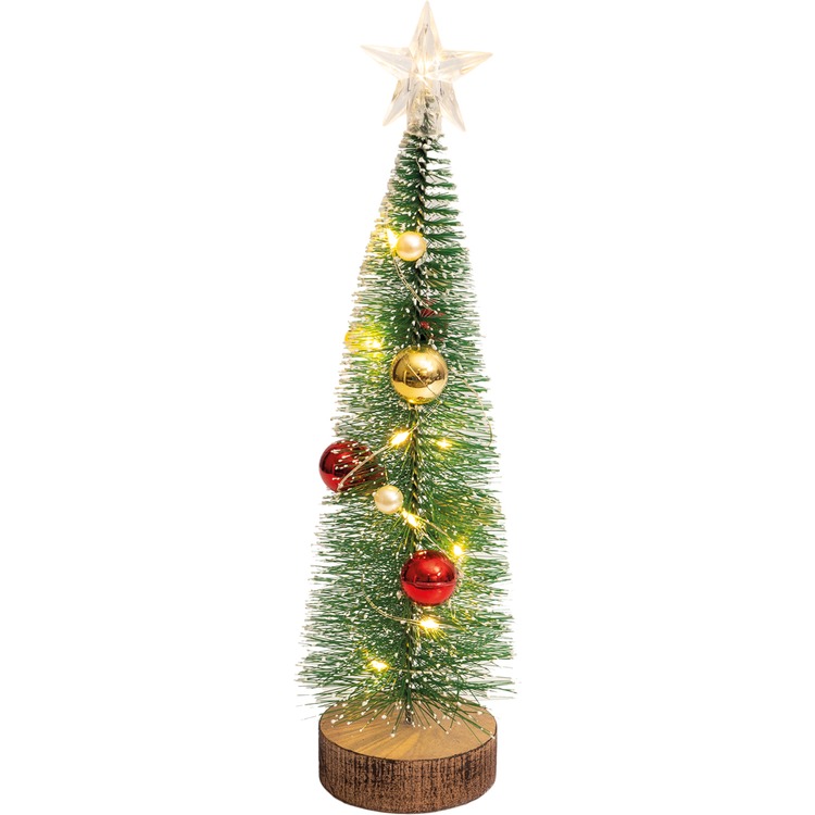 Made from wood sourced from an FSC accredited manufacturer.The battery powered light up mini Christmas Tree from St Helens Home and Garden is a beautiful festive addition to your window sill, table top or office desk. The tree has an authentic wooden base, baubles, a star that lights up and LED wire lights that wind around the branches, the end of each branch is white giving a stunning snow effect.