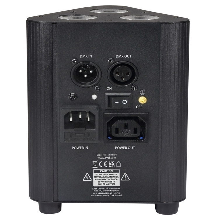 remote control or DMX if preferred, the Tri-PAR is packed with