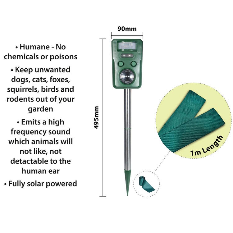 The St Helens Home and Garden Ultrasonic Animal Repeller is the humane way to keep unwanted animals such as dogs, cats, foxes, squirrels, birds and rodents out of your garden, no need for chemicals or poisons.