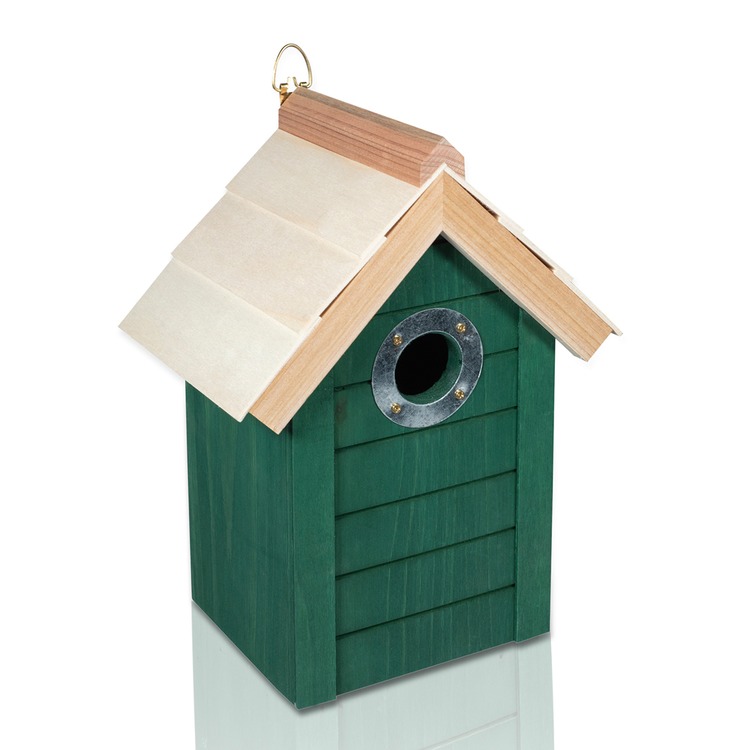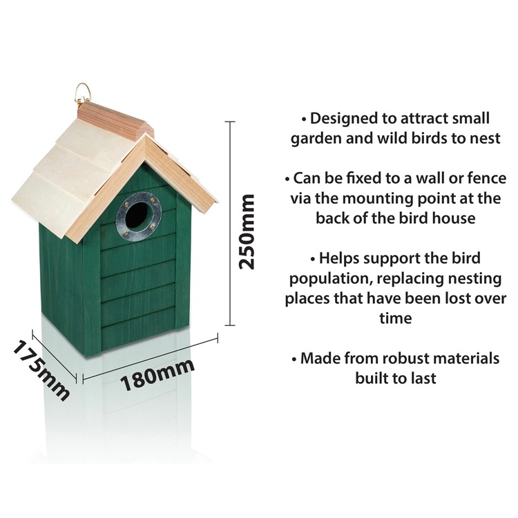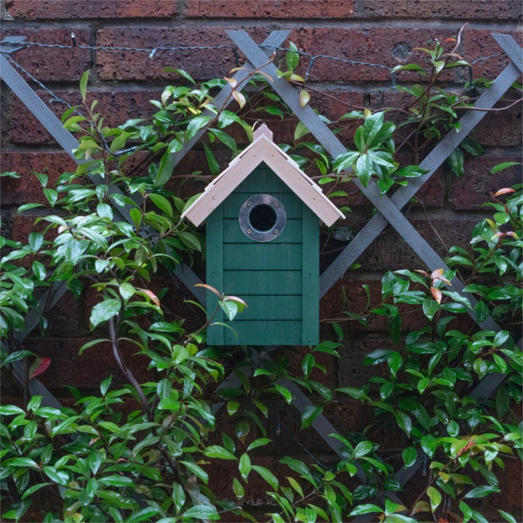 St Helens Home and Garden Wooden bird house and nesting box for use by small garden and wild birds.