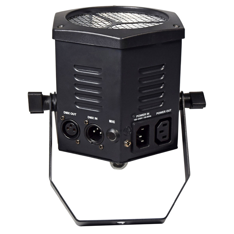 Stylish and sturdy, this Retro-style hexagonal PAR light is fitted with a bright 40W RGBW COB LED that produces an array of 15 eye-popping colours. The unit can be controlled by auto, sound-to-light, master/slave programs or via 5/7/9 channel DMX for more precise control.