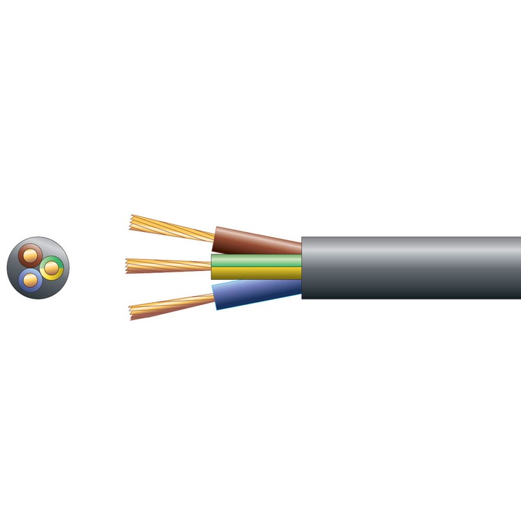 Black 100m round profile mains electric cable. Flexible PVC sheath.