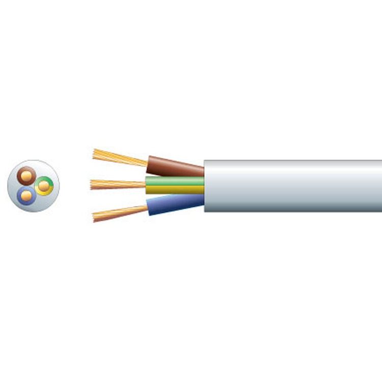 White 100m round profile mains electric cable. Flexible PVC sheath.