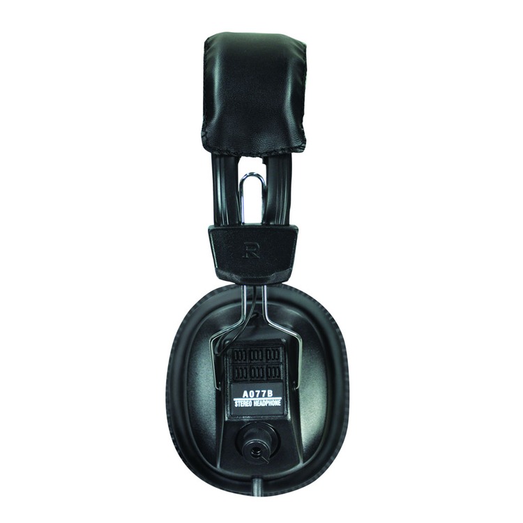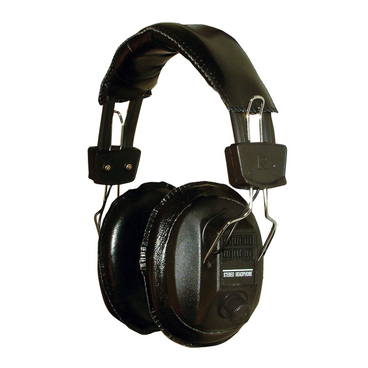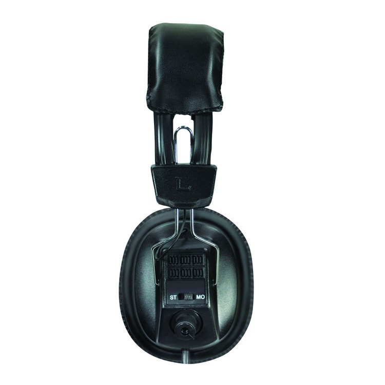 The full-sized economy stereo headphones with padded ear cups and a padded adjustable headband feature left and right volume controls and a mono/stereo switch.