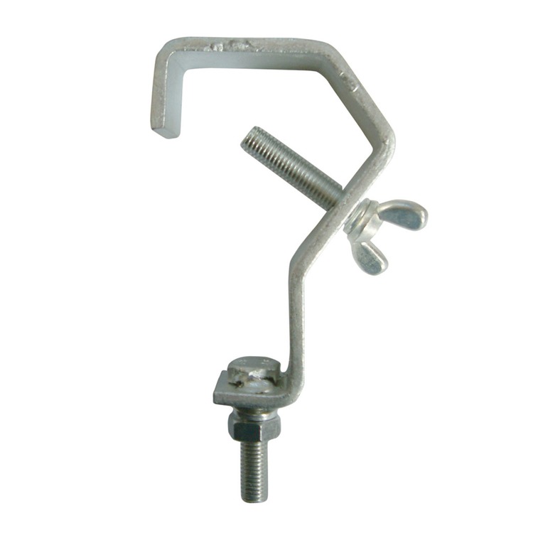 A heavy duty G clamp for trussing up to 50 mm, featuring a locking screw and M10 mounting with washer, maximum load of 50 kg.