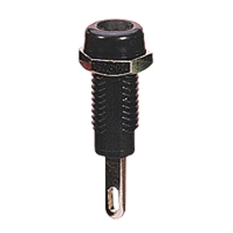 High quality Tip Sockets with black soft plastic body, self wiping contacts, single hole fixing and solder terminals.