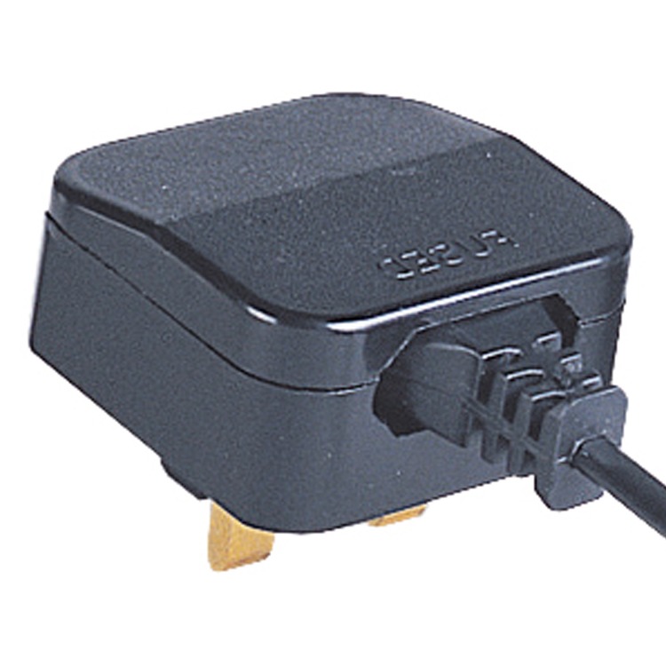 Converts 2 pole 2.5 A CEE7 Euro plug to 3 pin UK mains plug. With a hinged lid, secured with a non return screw, external fuse access and no loose parts, fitted with 5 A fuse. Plug secured using non return screw.