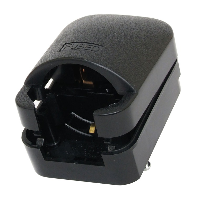Converts an earthed Schuko plug to a 3 pin UK mains plug.