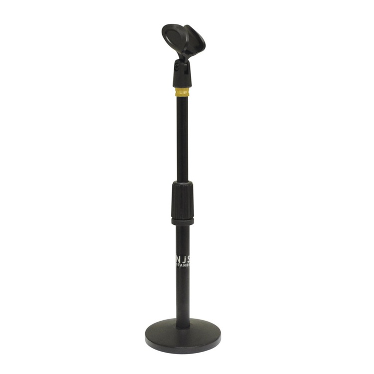 Height adjustable heavy cast base desk microphone stand, supplied with a microphone clip.