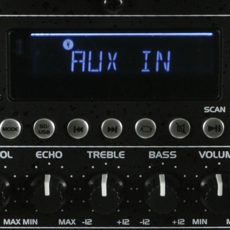 The aux input is ideal for phones, tablets, laptops and mp3 players; and the RCA in/out adds DJ connectivity and expansion/recording possibilities. SD and USB media, an integrated FM radio tuner, and paired Bluetooth devices can be controlled via the internal media player with IR remote control. A switchable VCV ‘voiceover’ function automatically lowers the volume of background music when a mic signal is received.