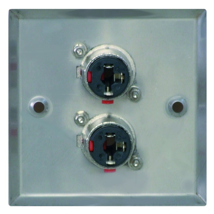A metal AV wall plate featuring 2x 6.35mm Jack Sockets.