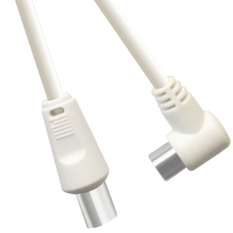 Standard 4 Metre Right Angled Coaxial Plug to Straight Coaxial Plug, White