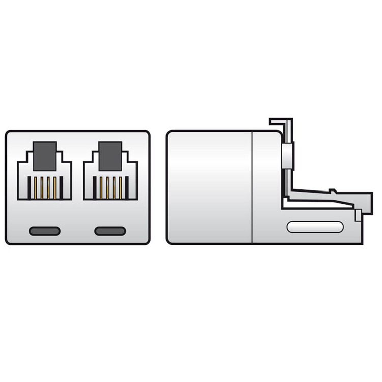 One RJ11 6P4C plug to two RJ11 6P4C sockets.