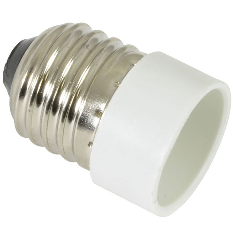 A lamp socket to convert a Edison screw 27 fitting to an edison screw 14 fitting.