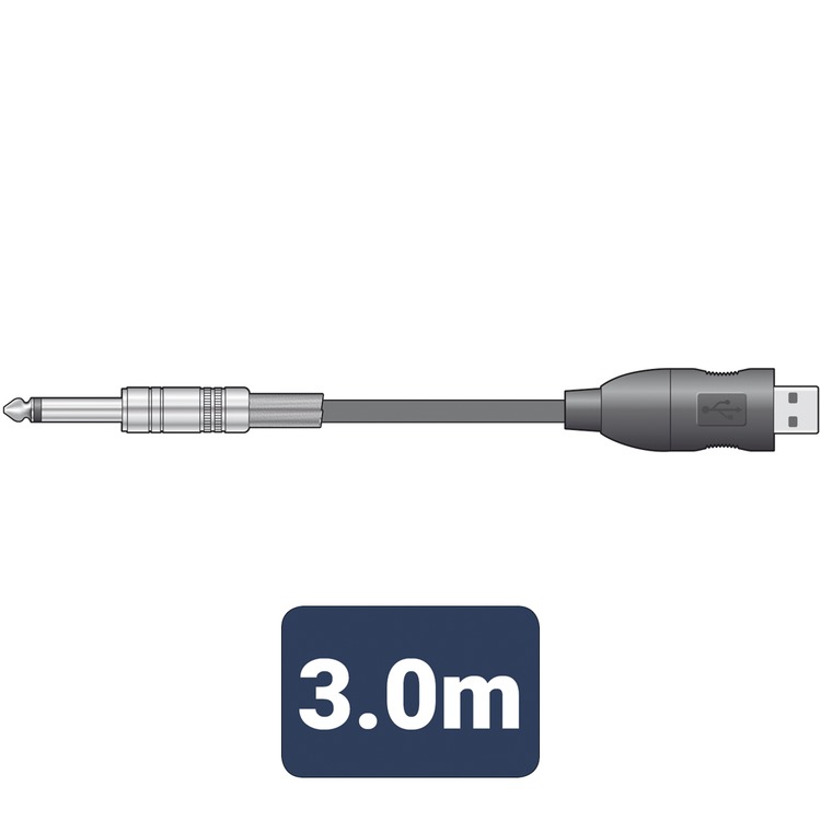 Analogue to digital conversion lead with 6.3mm jack connector at one end and USB type A connector at the other, for connecting a line input, instrument or dynamic microphone directly to a PC or Mac computer. An easy and efficient solution for digital recording of vocal lines, instruments and podcasts.