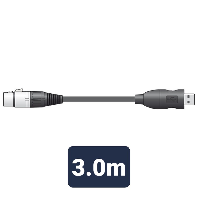 Analogue to digital conversion lead with XLRF jack connector at one end and USB type A connector at the other, for connecting a line input, instrument or dynamic microphone directly to a PC or Mac computer.
