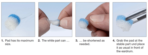 - A harder segment at the back (blue), ensures secure and stable insertion into the ear canal and prevents unwanted tilting of the pad.
